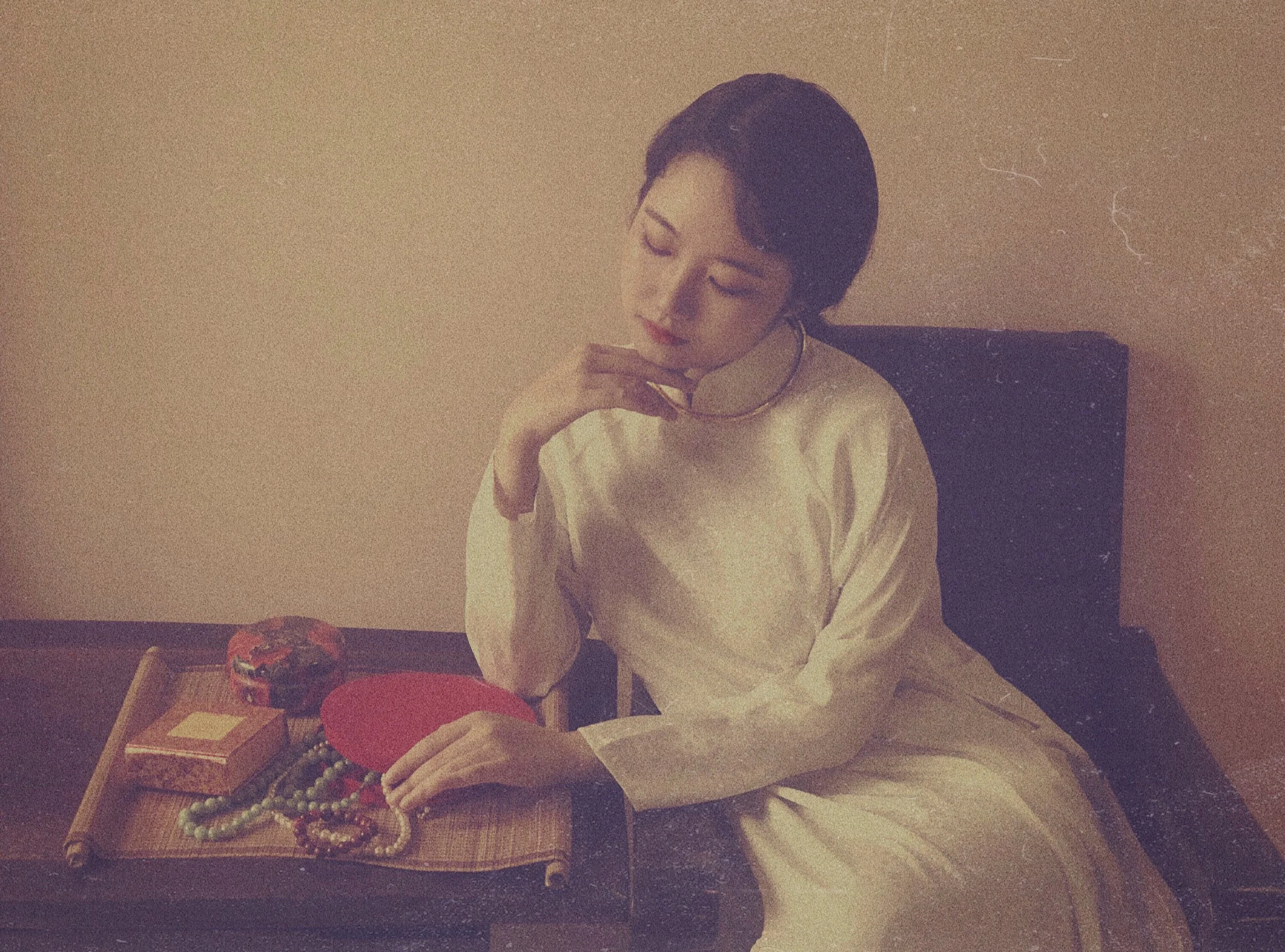 Due to the isolation of the COVID pandemic, I didn’t step outside for eight months straight. That was when I decided to build a home studio with the help of my sister so we could create photo concepts and pass the time together. The limitations on commuting and buying supplies during isolation pushed me to work with unfamiliar materials found around the house to bring my photographic concepts to life. My mom’s wedding dress, my late grandmother’s jewelry, an old torn doll, and fabric cut from unused clothes—all became part of my creative process.